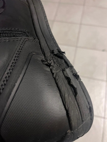 Reprezentujące miejski styl buty motocyklowe Rebelhorn Spike to rozwiązanie dla osób, którym zależy na bezpieczeństwie i komforcie użytkowania. Model ten charakteryzuje się wytrzymałością i odpornością na przetarcia, dzięki zastosowaniu wysokojakościowej skóry bydlęcej i mikrofibry. Obuwie spełnia europejskie standardy w kwestii bezpieczeństwa, czego efektem jest Certyfikat CE zgodny z normą EN13634:2018. W miejscach szczególnie narażonych na uszkodzenia i przetarcia tj. na kostkach oraz czubku, zastosowano wzmocnienia, które dodatkowo podnoszą oferowany poziom bezpieczeństwa. Do walorów Rebelhorn Spike należy zaliczyć także wydajną cyrkulację powietrza, za którą odpowiadają umieszczone po obu stronach perforowane panele. Dzięki nim użytkowanie obuwia będzie komfortowe także w ciepłe dni. Znajdująca się wewnątrz podszewka z materiału poliester mesh zapobiega poceniu i przegrzaniu stopy poprzez optymalne odprowadzanie wilgoci. Buty motocyklowe Spike posiadają zamek błyskawiczny, który ułatwia zarówno zakładanie, jak i zdejmowanie obuwia. Uwagę przykuwa również niwelująca wstrząsy i drgania anatomiczna wkładka z pianki, a także górna krawędź buta, która została wykończona miękkim materiałem, chroniącym stopę przed otarciami.